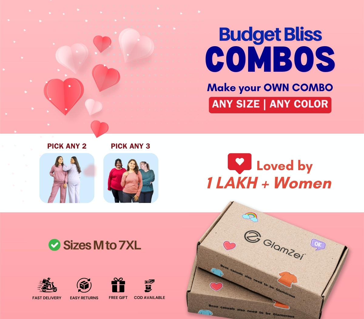 Upgrade your wardrobe with GlamZei trendy collection of women T-shirt combo packs available in all sizes ranging from S to 7XL. From graphic tees to full-sleeve options, they have everything you need to elevate your style game. They have exclusive discounts and offers that you don't want to miss for women’s T-shirt combo packs. Buy pure cotton combo deals for women t-shirts at affordable rates today and make a statement with your everyday fashion choices! Shop for women's T-shirts online in India at GlamZei!