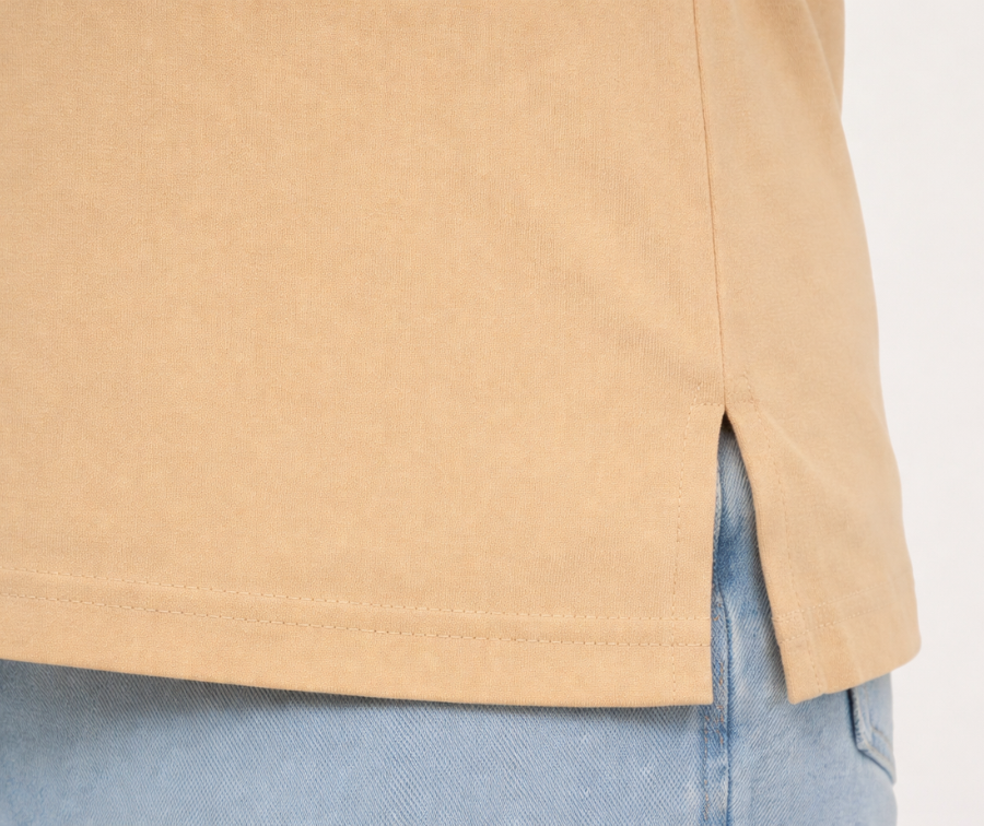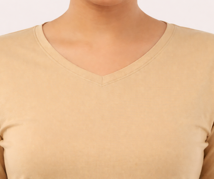The Biscotti Beige Full Sleeves V-Neck T-shirt features side slits and is available in a variety of colors. Designed to deliver a flawless fit that flatters all body types, it is made from soft, breathable fabric to ensure comfort throughout the day. Offered in sizes M to 7XL, its tailored cut enhances natural curves with ease. The sleek V-neckline and functional side slits add modern style and ease of movement. Durable stitching maintains the T-shirt’s quality and strength even after many washes. Combining comfort, precise fit, and lasting durability, this T-shirt is an ideal and fashionable choice for everyday wear.