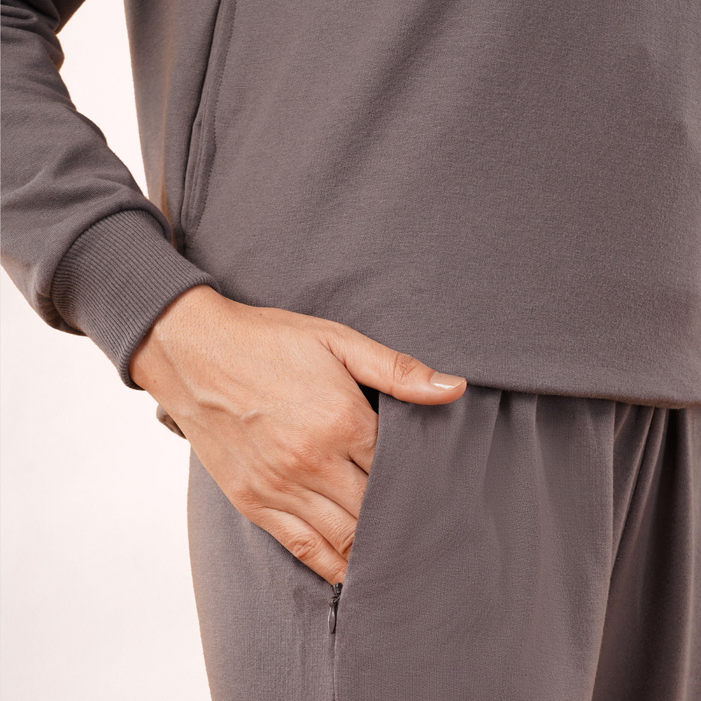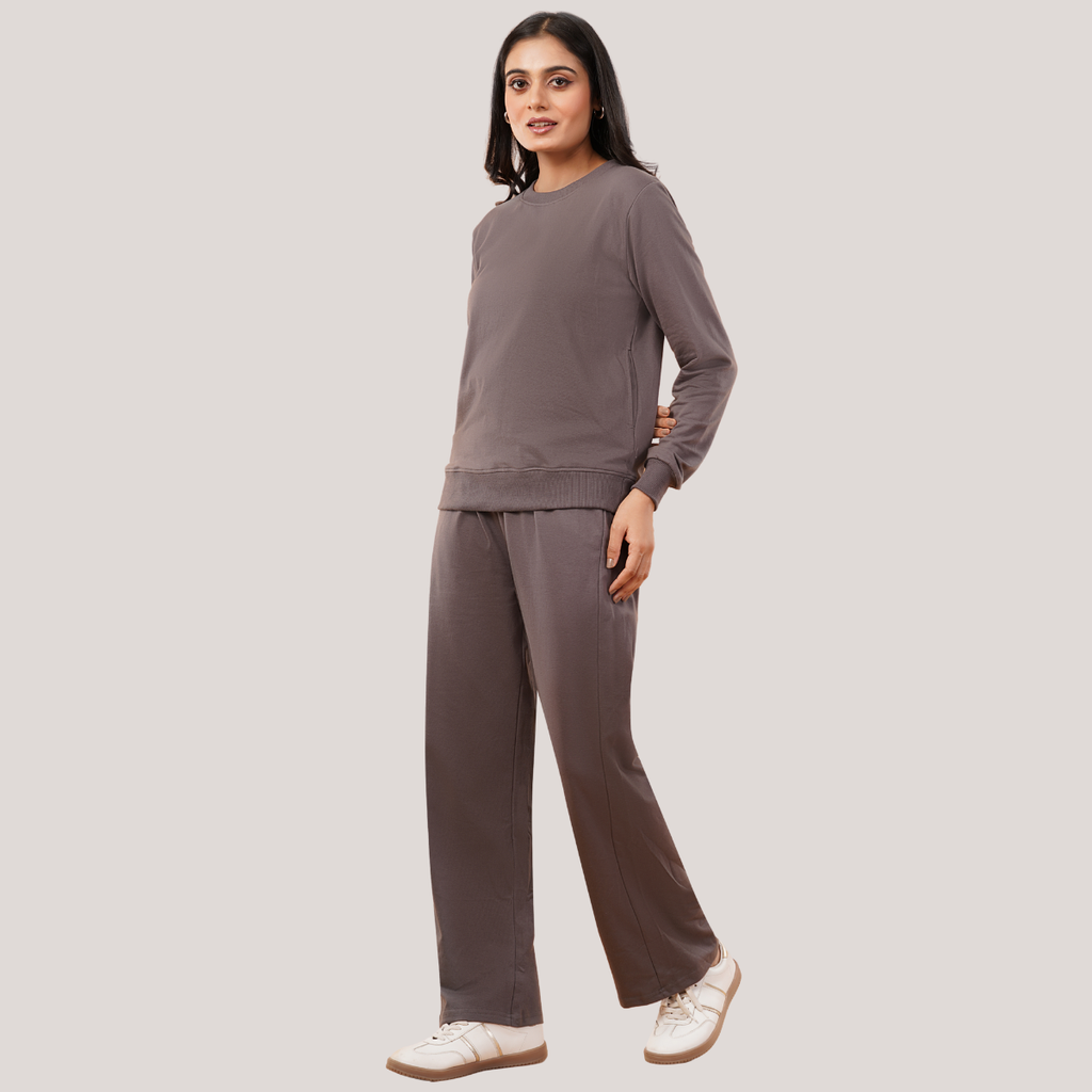 The Graphite Grey Co-ords Set is made from ultra-soft premium cotton, providing comfort and flexibility throughout the day. It includes a breathable, relaxed-fit sweatshirt and pants equipped with hidden pockets and an adjustable drawstring for a customized, secure fit. Built to be durable and easy to maintain, this set seamlessly combines function with style. Perfect for casual outings or leisure, the Graphite Grey Co-ords Set is a dependable, fashionable addition to any wardrobe, delivering enduring quality and sophisticated comfort in a unified look.