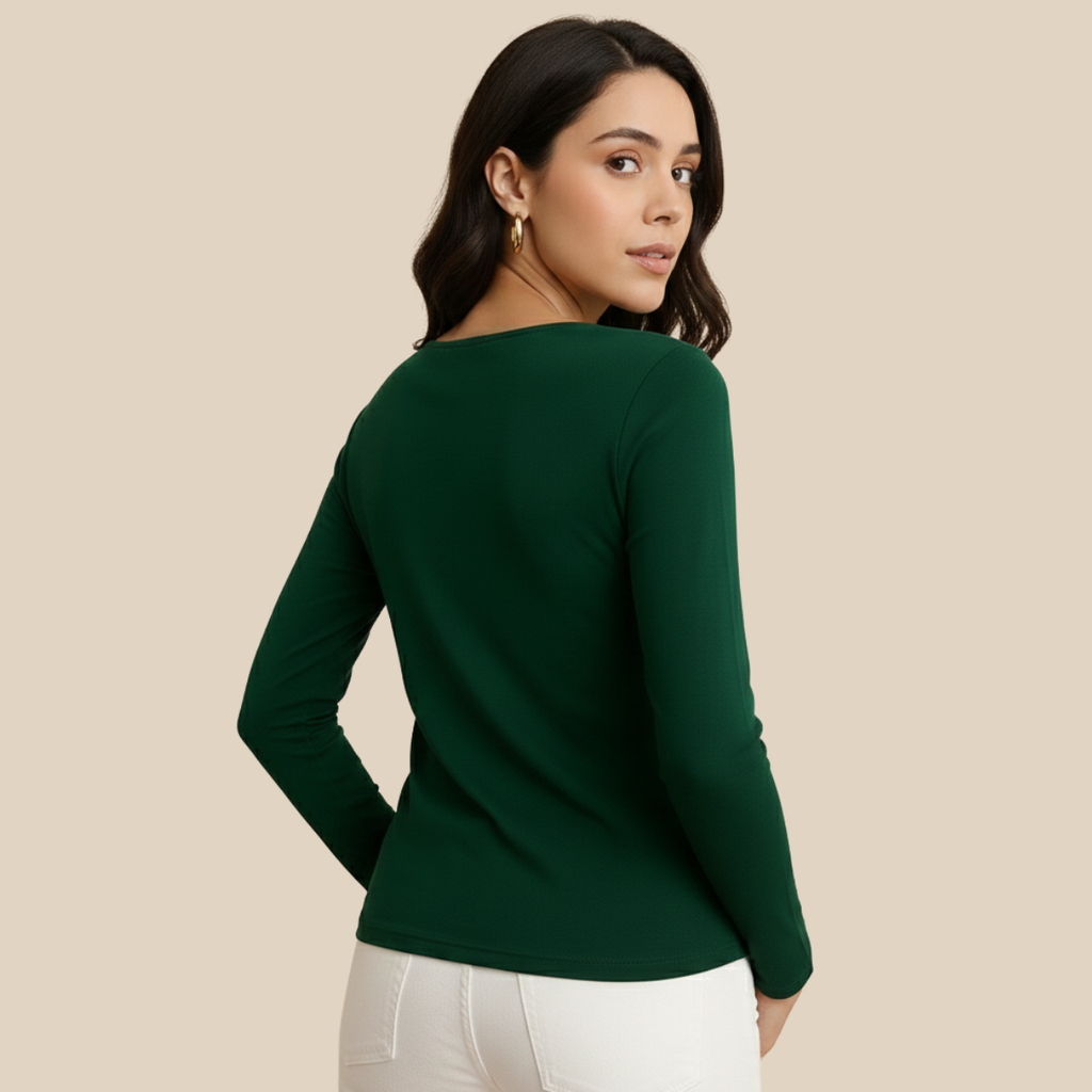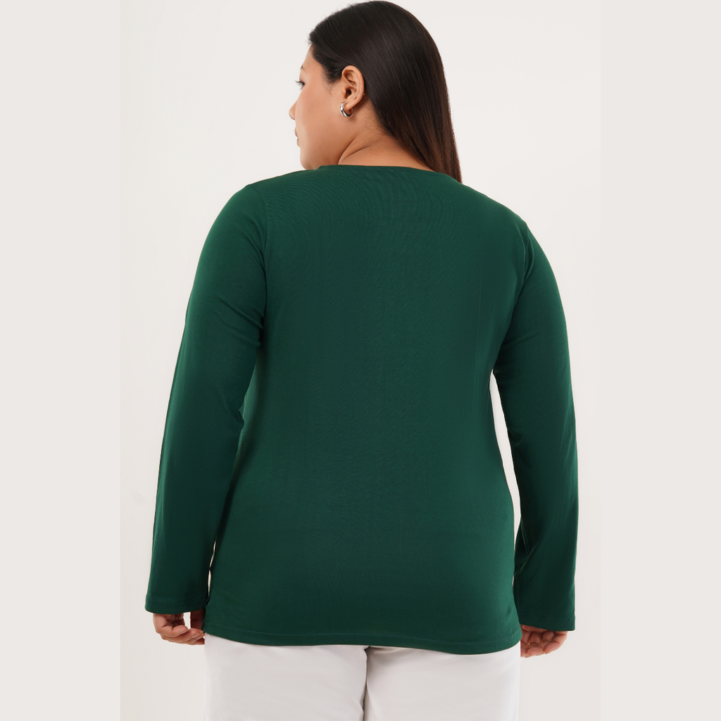 The Gritty Green Full Sleeves Solid T-shirt for Women offers a regular fit with a classic round neck design. Crafted from 100% cotton, it ensures comfort and breathability. Available in over 10 colors and inclusive plus sizes, this tee combines style and versatility for everyday wear.