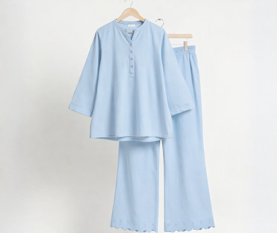 Elevate your wardrobe with our Light Blue Denim Co-ords Set, crafted from 100% denim cotton for lasting comfort and style. This versatile set features a tunic top with 3/4th sleeves paired with wide-leg pants, offering a relaxed yet polished look. The breathable denim fabric adds a casual, stylish edge ideal for various occasions, from casual outings to social gatherings. Designed for both comfort and fashion, this co-ords set brings effortless sophistication to your everyday attire, making it a must-have addition for any season.