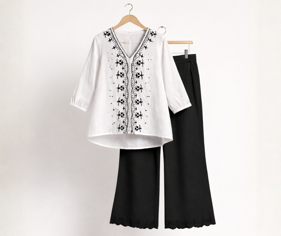 Black embroidered co-ord sets are designed for comfort and everyday ease. Made from breathable cotton, they feel soft on the skin and are perfect for long hours of wear. The straight-fit design gives a neat, relaxed look that works for both casual and semi-formal outfits. Featuring a half-elastic waistband at the back and practical side pockets, they combine comfort with functionality. Easy to pair with any top, these jeans are a wardrobe essential. Available in 3 colors and sizes from M to 7XL for a perfect fit.