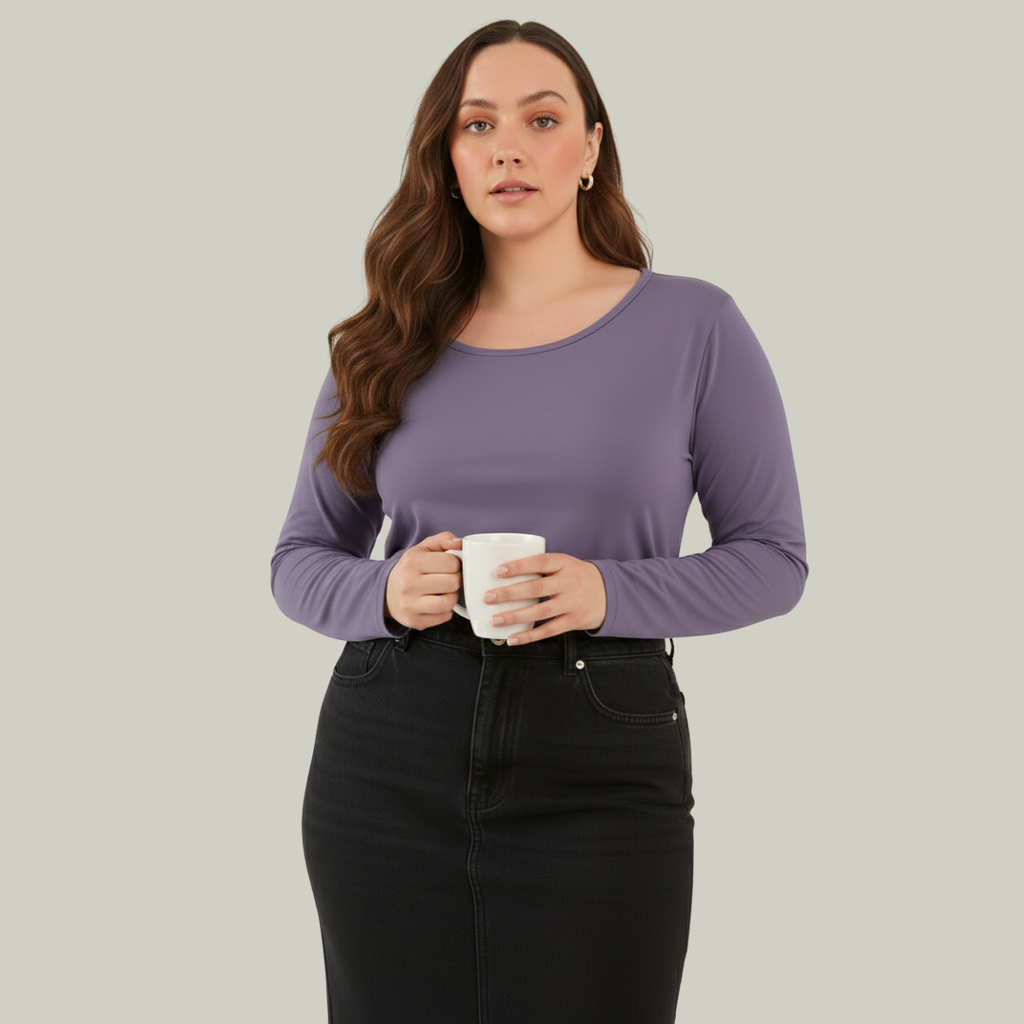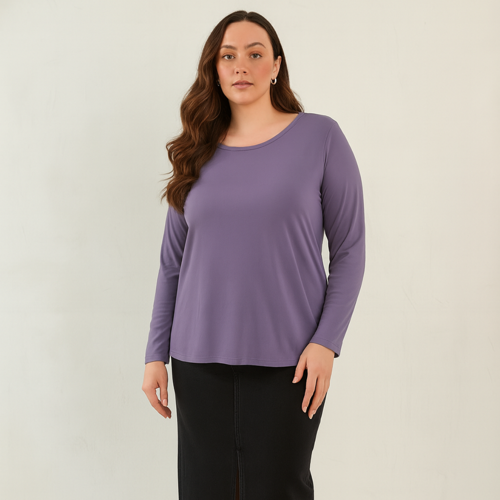 The Lively Lilac Full Sleeves Solid T-shirt for Women combines thoughtful design with high-quality fabric to meet the needs of plus-size wearers. Its breathable material promotes airflow, reducing discomfort and moisture buildup during extended wear. The classic round neck complements diverse styles, while the extensive color selection allows personalized expression. Designed for versatility, this T-shirt pairs seamlessly with jeans, skirts, or layering pieces, supporting both casual and semi-formal looks. Its tailored fit provides gentle shaping without restricting movement, making it an essential foundation piece for a confident, comfortable wardrobe throughout the year.
