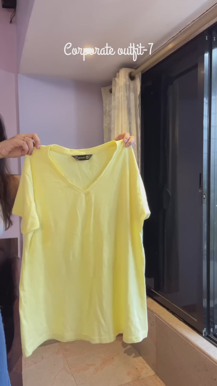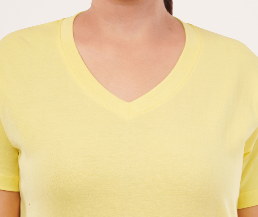 Lovely Lemon Solid V-Neck T-shirt for Women