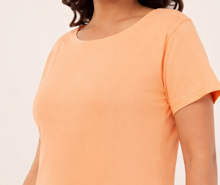 Discover Peach Fuzz, the Pantone Color of the Year 2024, brought to you by GlamZei. Crafted from soft, breathable cotton, this t-shirt offers exceptional comfort while allowing you to showcase your unique style. Set trends among your peers by being one of the first in India to wear this stunning hue. Perfect for a variety of casual settings, whether you're working from home, socializing with friends, or enjoying a relaxing Netflix session. Its solid color and versatile design make it an essential piece that seamlessly complements your everyday wardrobe, providing style and comfort whenever you need it.