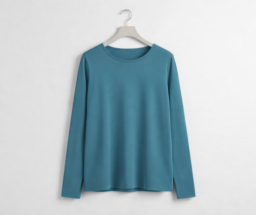 Peacock Teal Full Sleeves Solid T-shirt for Women
