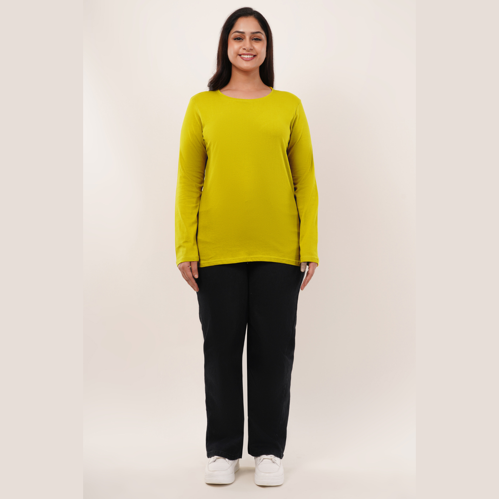 The Sunshine Sorbet Full Sleeves Solid T-shirt for Women impresses with its vibrant, captivating color that refreshes any outfit. Crafted from 100% bio-washed cotton, it delivers exceptional softness and breathability, ensuring lasting comfort all day. Featuring a classic round neck, this T-shirt offers a timeless style that pairs effortlessly with both casual and semi-casual looks. Durable and easy to care for, it combines comfort with reliable wearability. This versatile piece is an essential addition to any wardrobe, blending style and practicality for everydaywear with expert quality and thoughtful design.