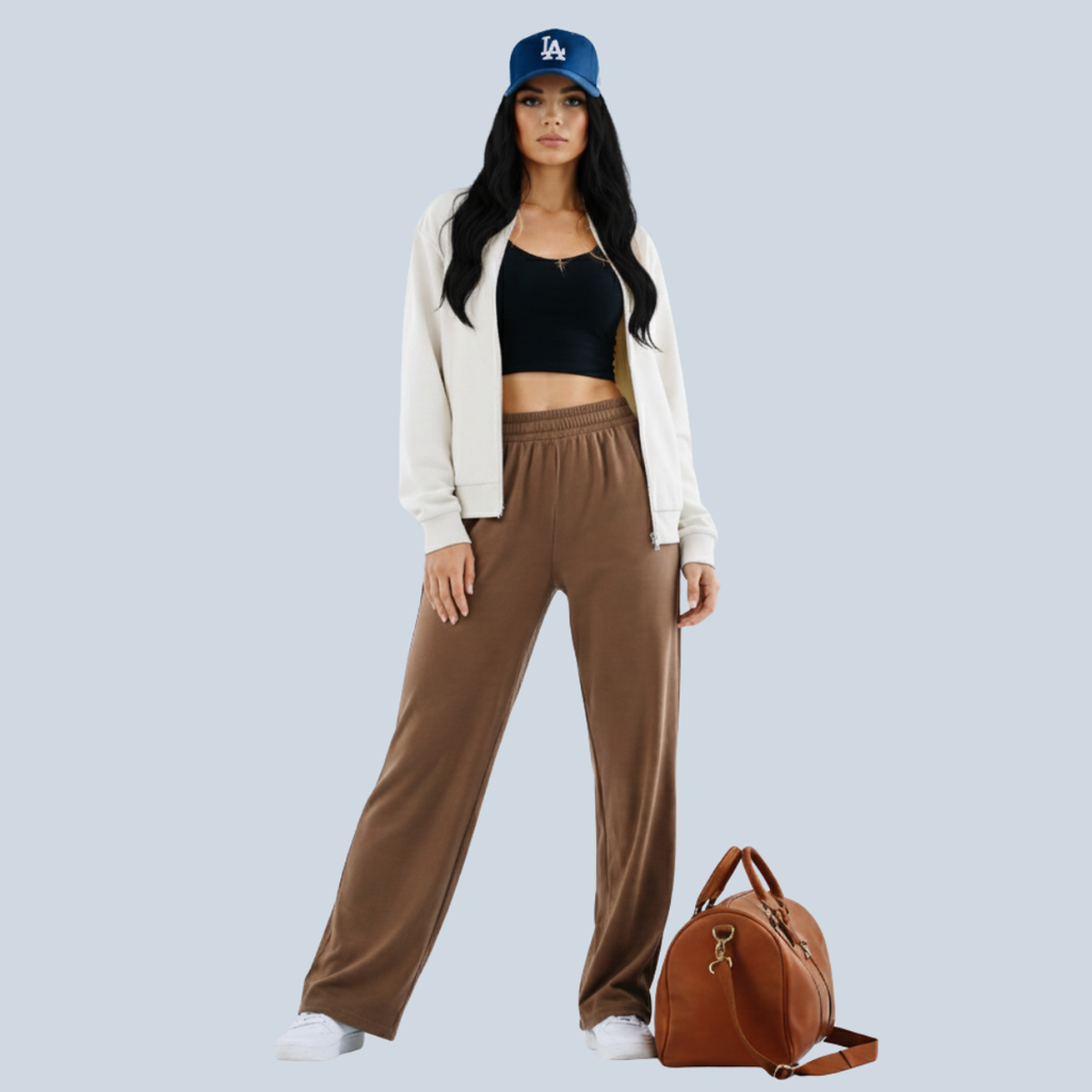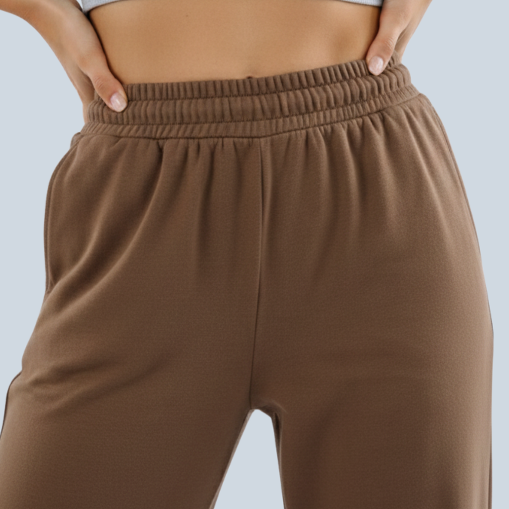 Tiramisu Brown All Day Pants are crafted from 100% premium cotton, ensuring unmatched comfort and timeless style. Their super soft, lightweight fabric offers breathability, while an adjustable hidden drawstring provides a flattering, relaxed fit suitable for all sizes. Featuring a zippered side pocket, these pants offer secure storage and enhanced practicality. Polished stitching adds refinement to the versatile flared silhouette, making them suitable for every season. Combining functionality with elegance, these pants are an essential, sophisticated addition to any well-curated wardrobe.