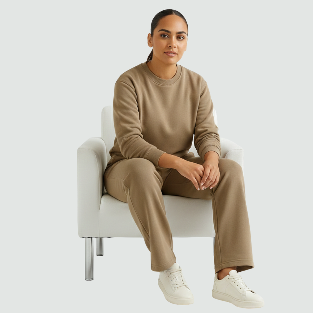 Tiramisu Brown All Day Pants are crafted from 100% premium cotton, ensuring unmatched comfort and timeless style. Their super soft, lightweight fabric offers breathability, while an adjustable hidden drawstring provides a flattering, relaxed fit suitable for all sizes. Featuring a zippered side pocket, these pants offer secure storage and enhanced practicality. Polished stitching adds refinement to the versatile flared silhouette, making them suitable for every season. Combining functionality with elegance, these pants are an essential, sophisticated addition to any well-curated wardrobe.
