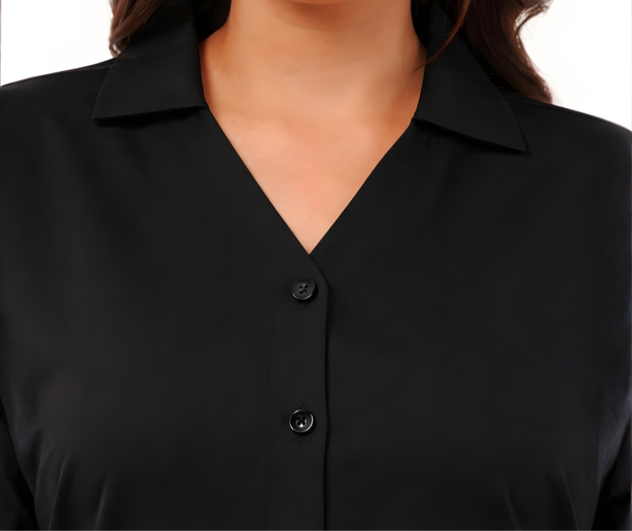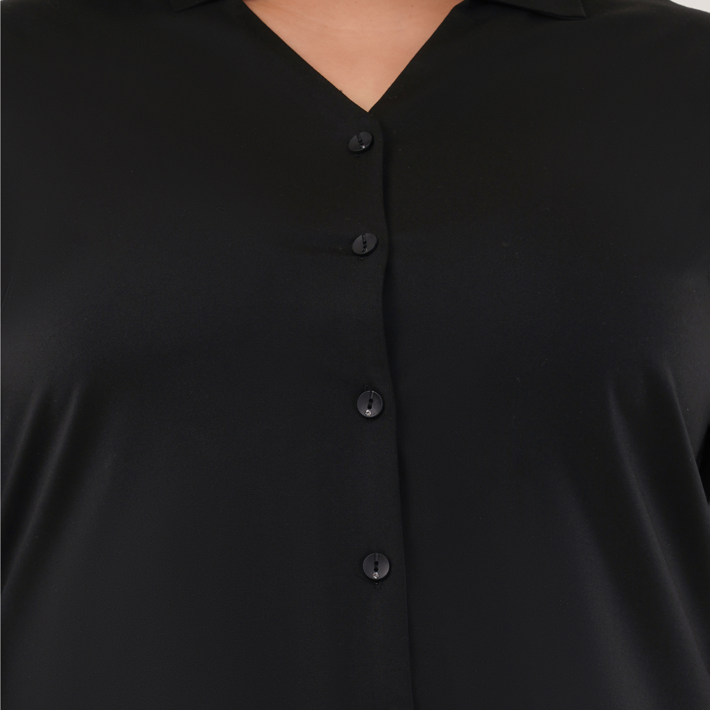 The Velvet Black Shirt for Women blends elegance and comfort, made from pure rayon fabric for a soft, breathable feel. It features a flattering V-neck collar and chic 3/4th sleeves with detailed buttons, creating a polished look for any event. Side slits provide added mobility and a modern style element. Available in sizes M to 7XL, this versatile top ensures a comfortable fit for all. With multiple color options, it effortlessly coordinates with various wardrobe choices. Perfect for both casual and formal occasions, this shirt offers quality and sophisticated style tailored to diverse preferences.