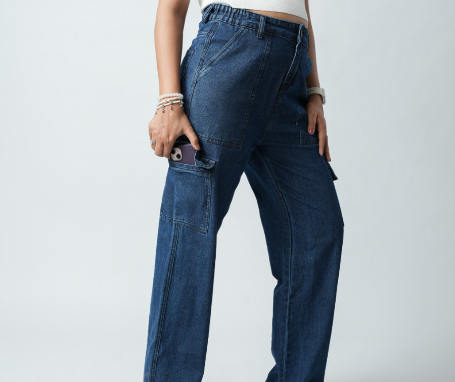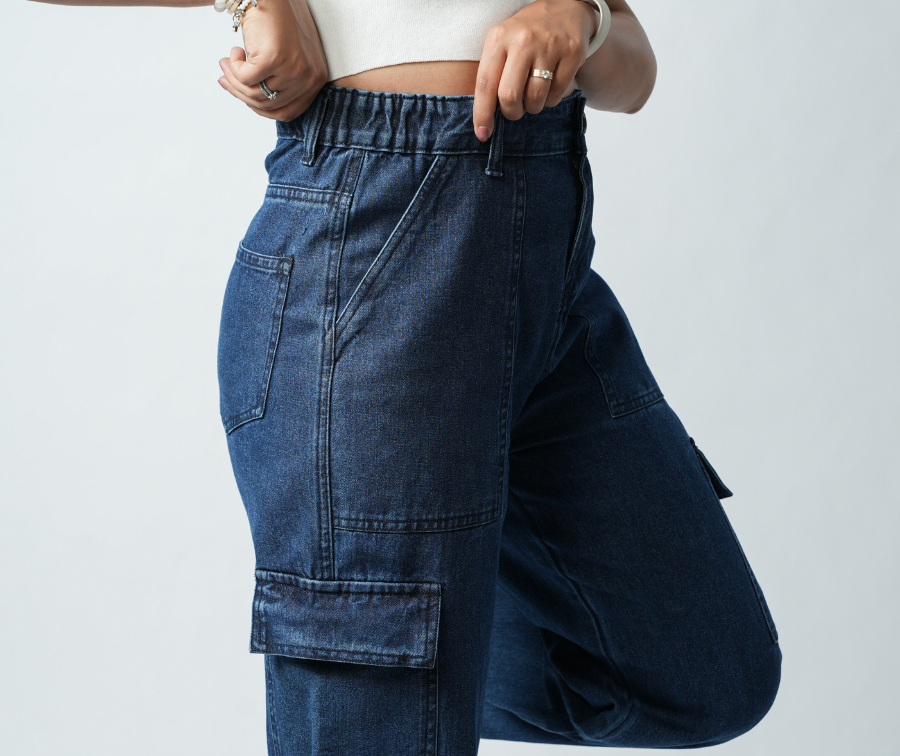 Women's Navy Blue Essential Cargo Jeans