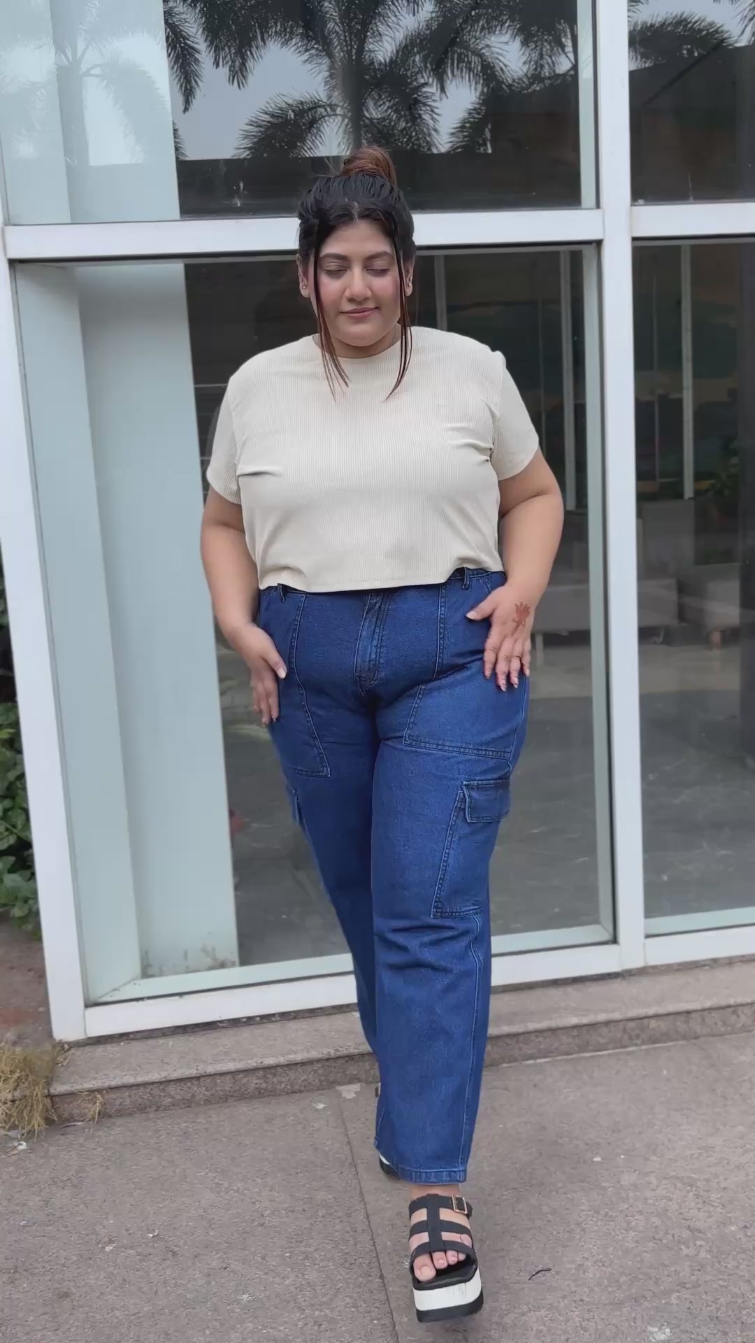 The Women's Navy Blue Essential Cargo Jeans combine comfort and style, featuring an adjustable waistband that allows for a tailored, comfortable fit suited for plus sizes. Designed with six functional pockets, these jeans offer practicality without sacrificing a sleek, streamlined appearance. The perfect length ensures versatility for various footwear choices, enhancing their adaptability across different looks. Crafted from durable fabric, the rich navy blue color resists fading, maintaining its vibrant appearance even after repeated washes. Ideal for everyday wear, these cargo jeans provide a reliable blend of functionality, comfort, and lasting style for a polished, modern wardrobe staple.